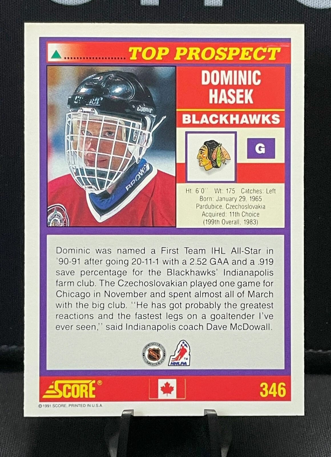 / 1991-92 Score Canadian English #346 Dominik Hasek RC Rookie Blackhawks
