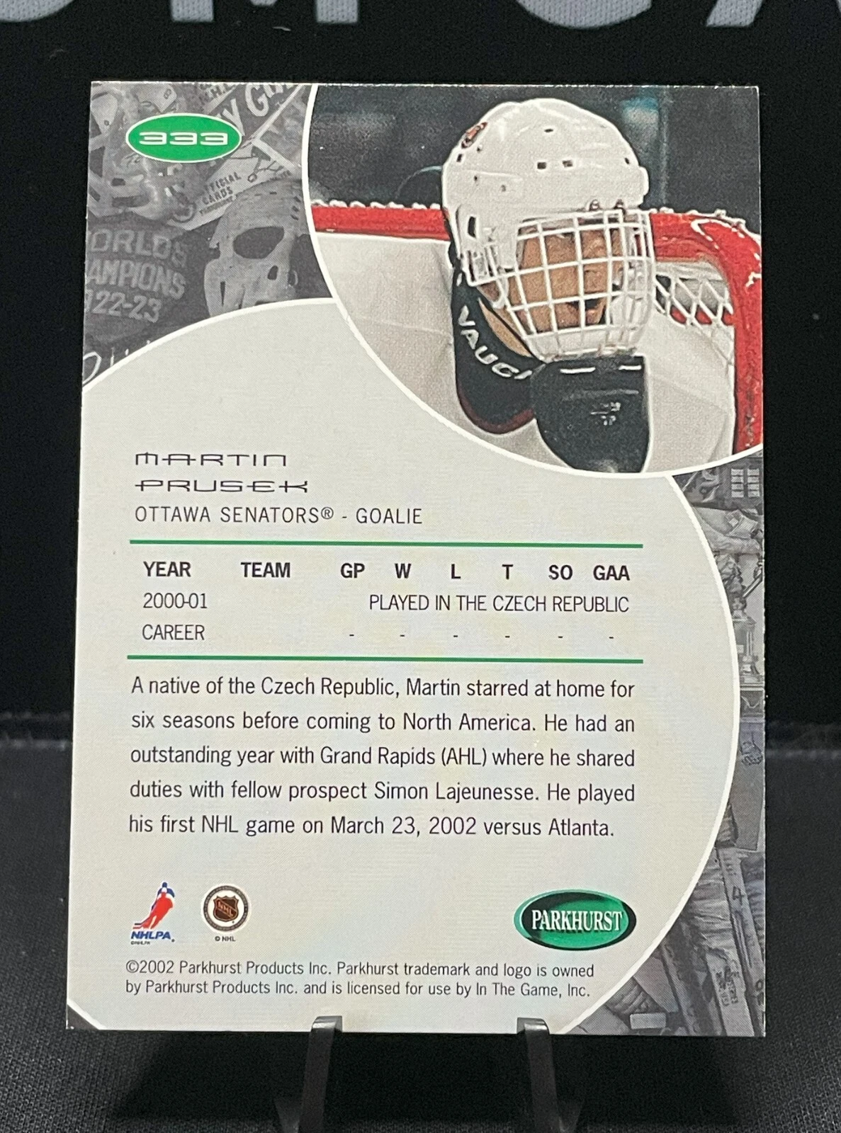 / 2001-02 Parkhurst Rookie – #333 Martin Prusek RC