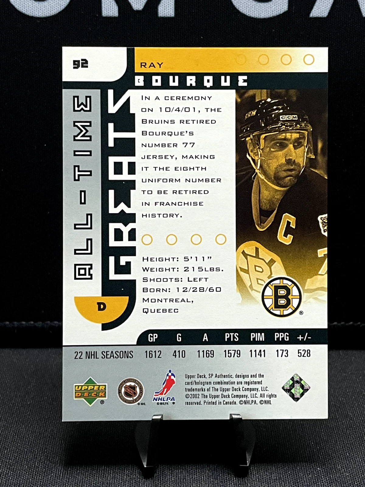 / 2001-02 SP Authentic All-Time Greats #92 Ray Bourque 3177/3500 – Boston Bruins