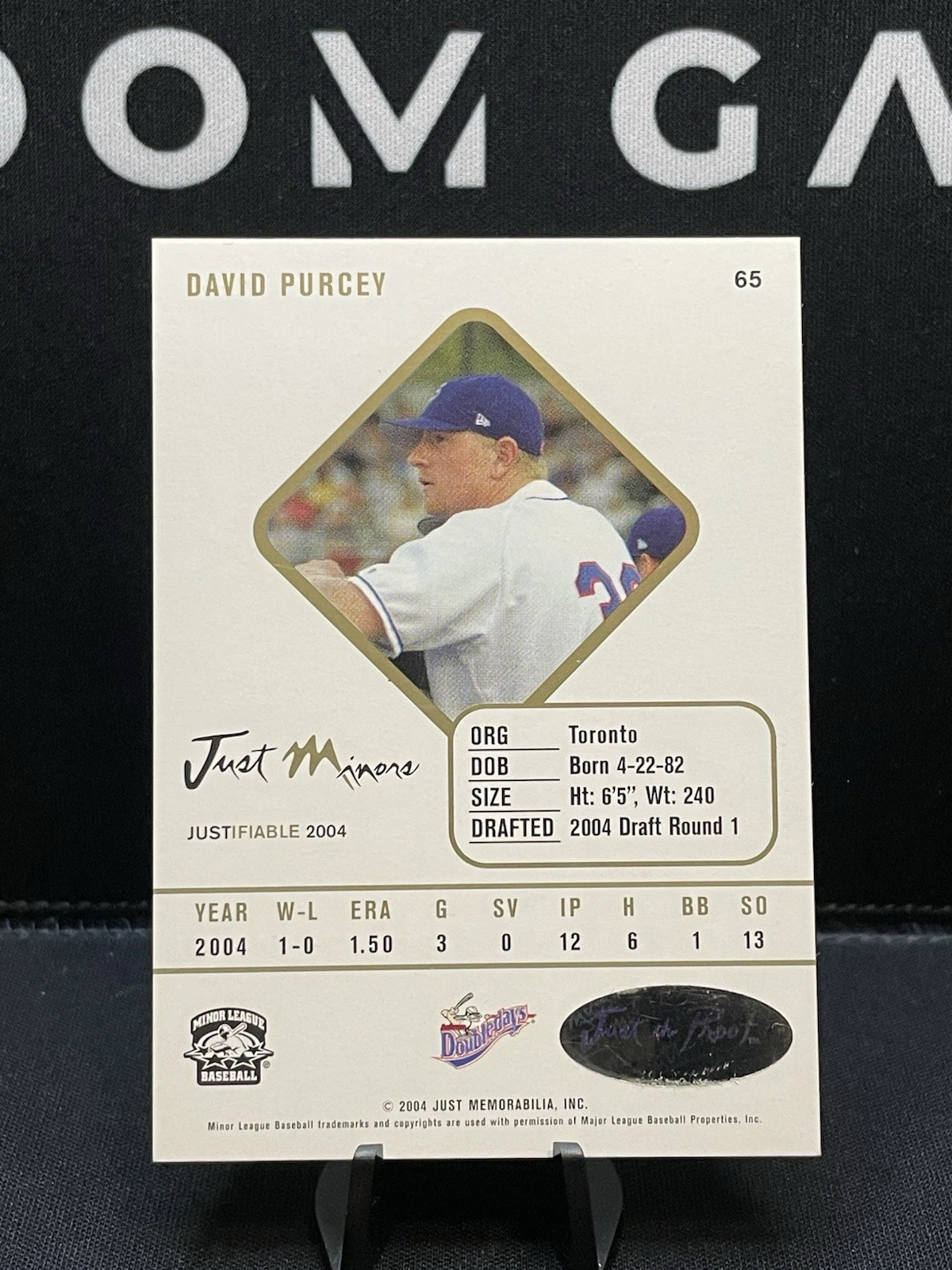 / 2004 Just Minors Justifiable Auto David Purcey #65 Rookie Auto RC Auburn