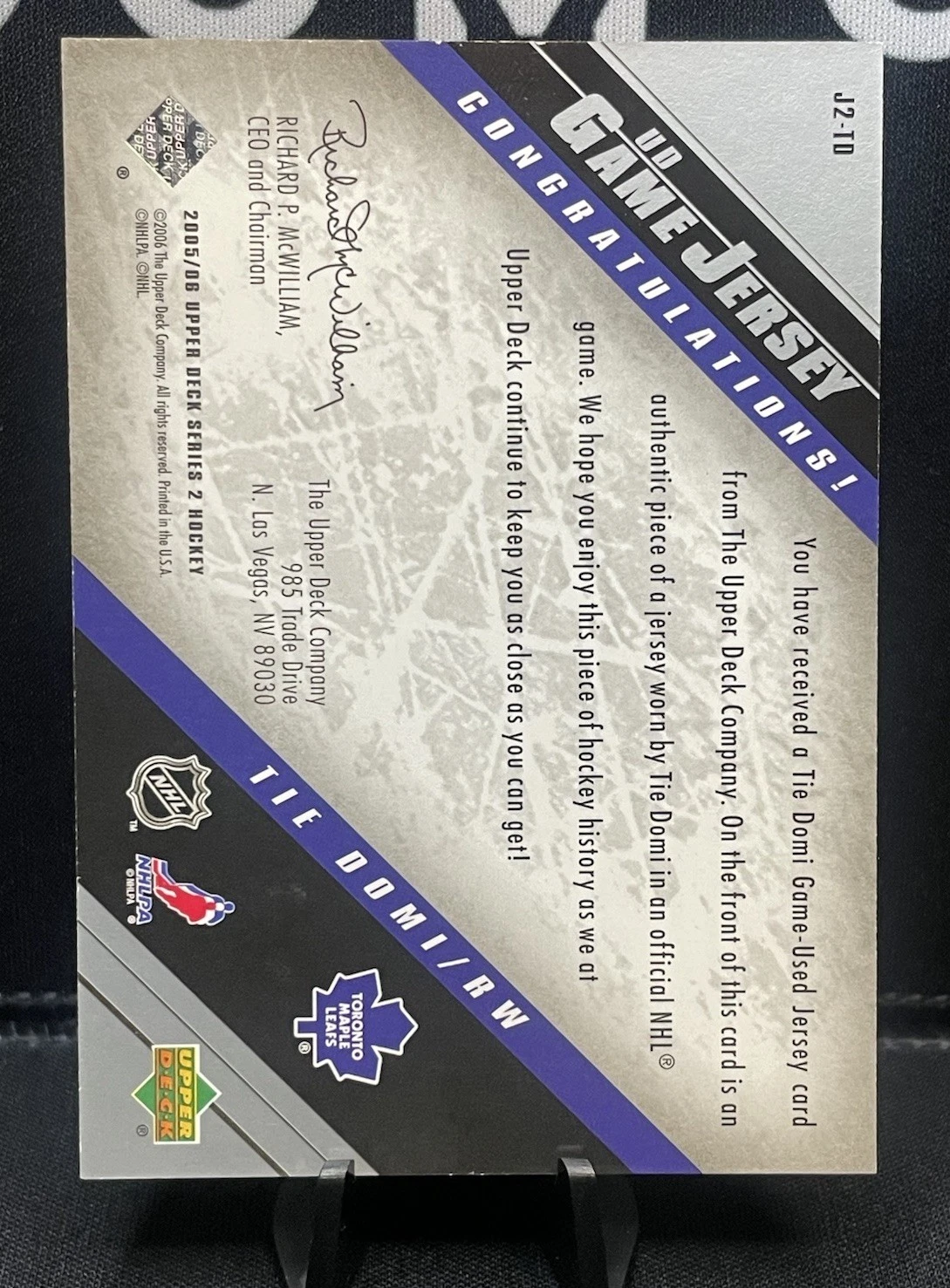 / 2005-06 Upper Deck Game Jersey J2-TD Tie Domi Toronto Maple Leafs