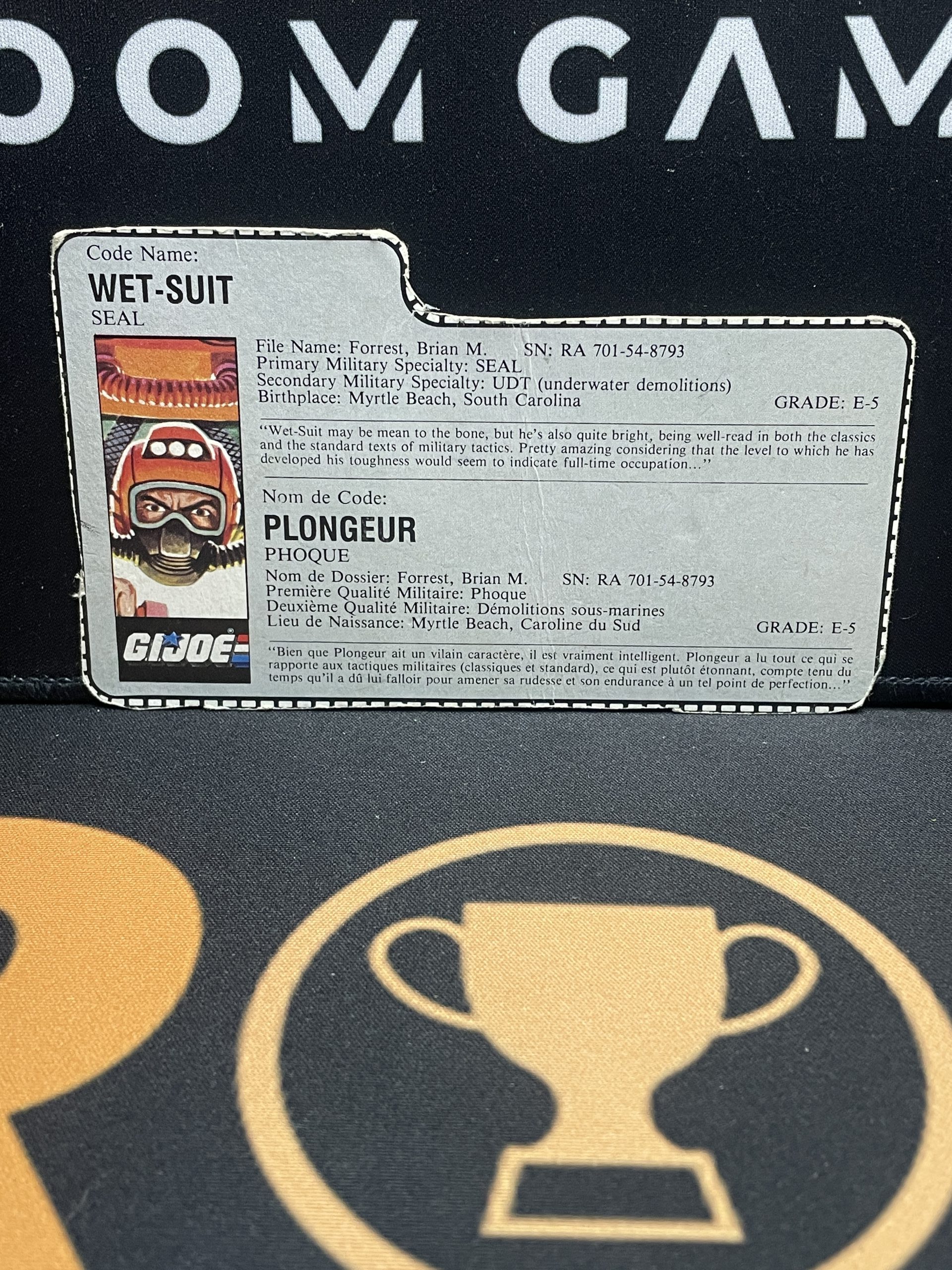 G.I.Joe Hasbro 1986 Wet Suit (Incomplete, Previously Played) with file card