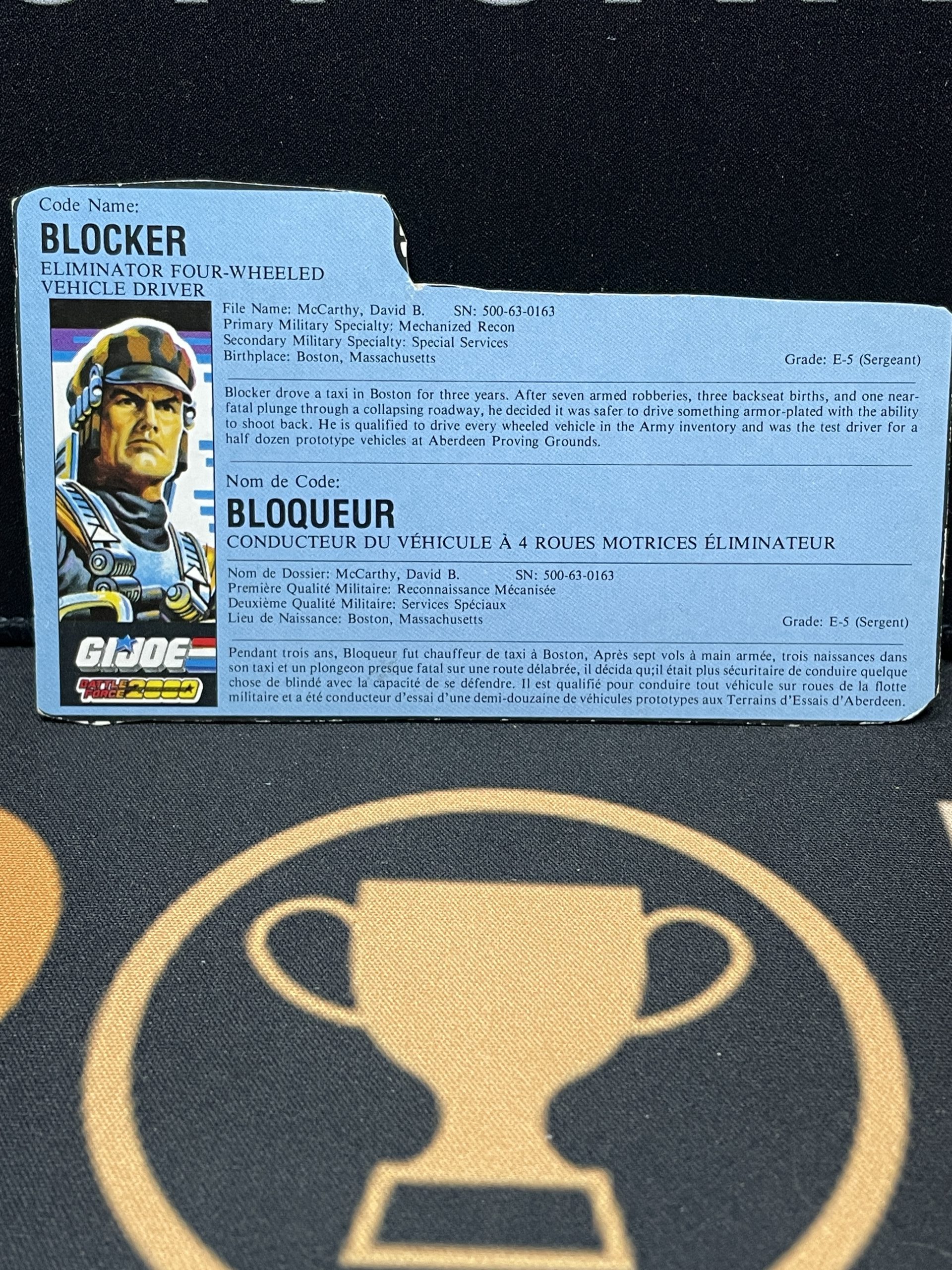 G.I.Joe Hasbro 1987 Blocker v1 (Incomplete, Previously Played) with file card