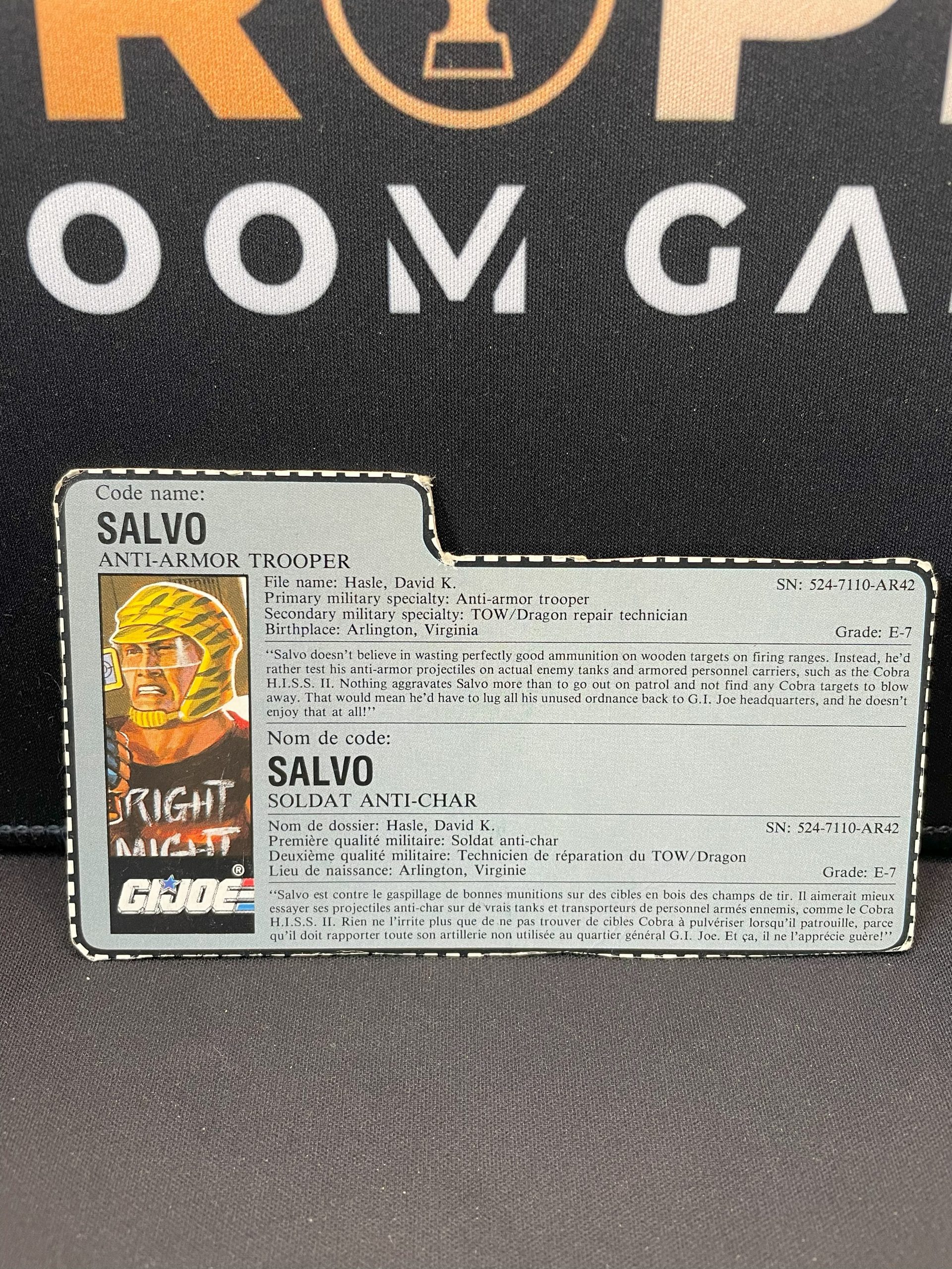 G.I.Joe Hasbro 1990 Salvo (Incomplete), with file card.